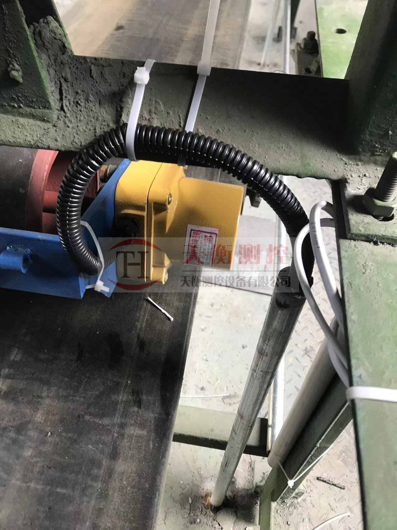安装时,测速滚轮紧压回程皮带,测速装置通过角钢支架,固定在输送机上,安装方便,使用运行中维护量小。